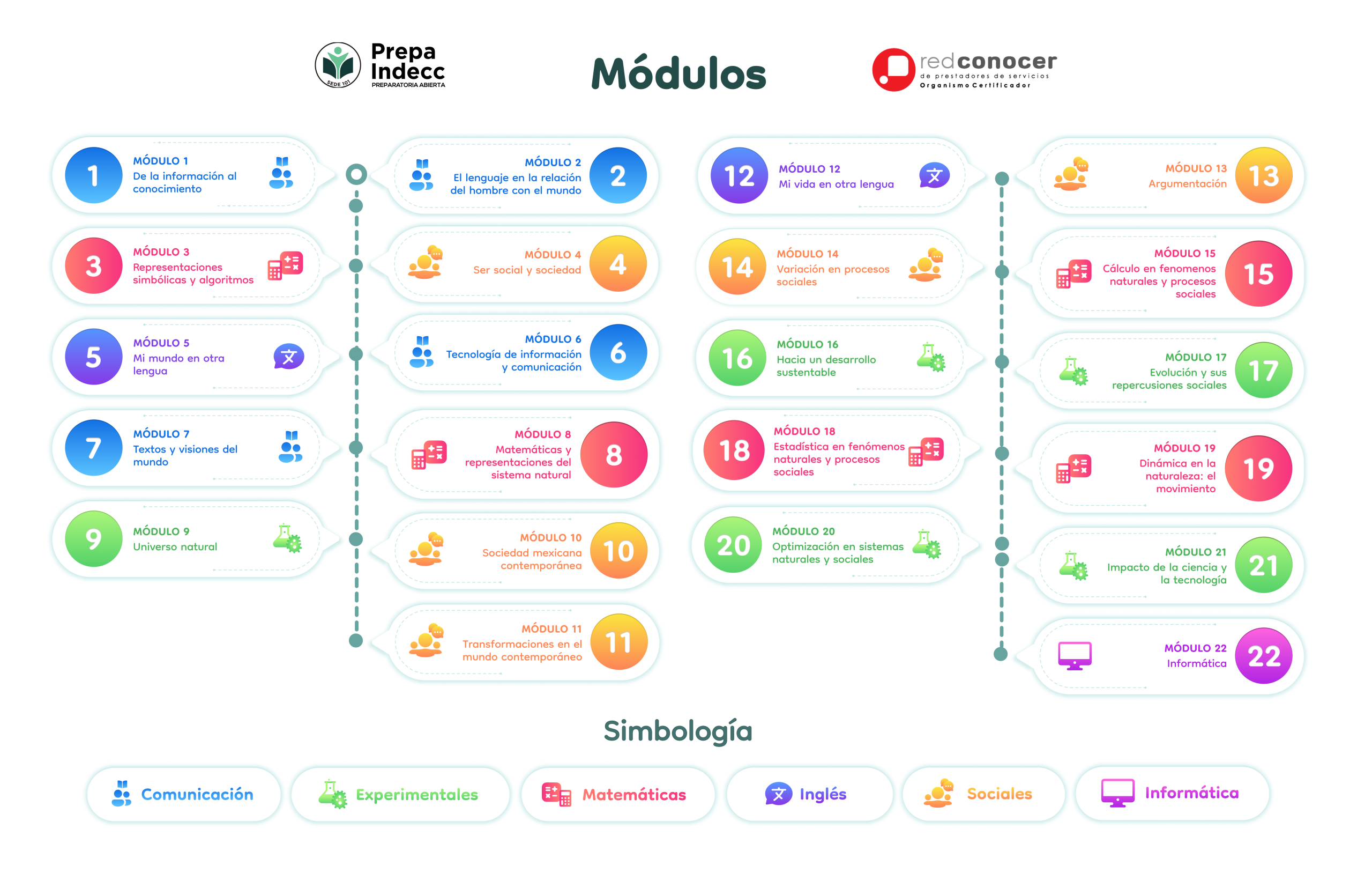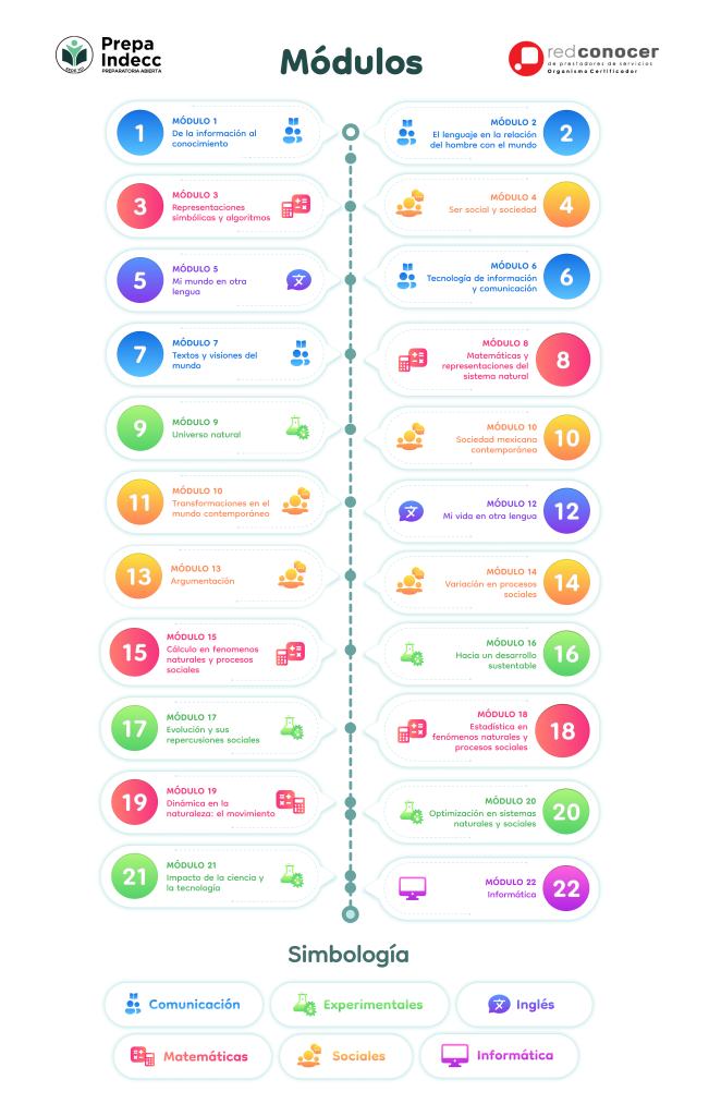La preparatoria abierta consta de 22 módulos, organizados por áreas de conocimiento.
